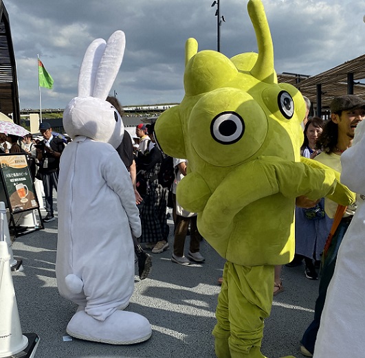 ウサギの横にいる黄緑色のキャラクター【レネ】も遠目に撮影できました。