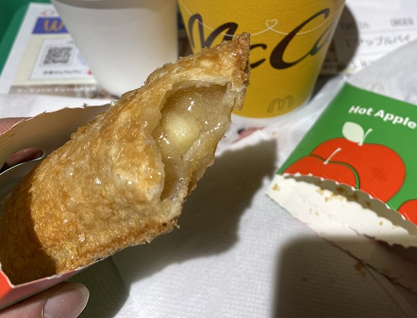 たっぷりのホットコーヒーと一緒にくつろぎタイムになりますけど、私はやっぱり三角チョコパイ同様チョコ派です。ただ、ホットアップルパイは番外として食べたくなる一品です。