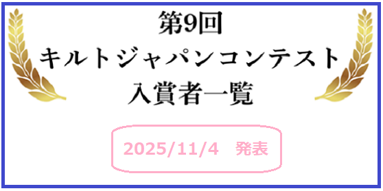 今日はキルトジャパンコンテストの入賞者の(web)発表でした。入賞者一覧の中に名前を見つけました。なんの賞かはわからないけど嬉しい♡♡♡11月20日を過ぎましたら、作品をアップしたいと思います。テーマは【喜び】でした。
