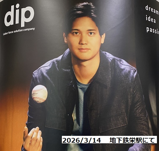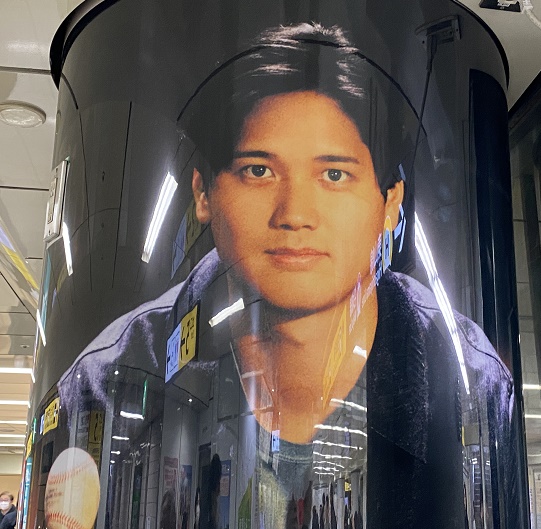 地下鉄の駅ではカッコいい大谷選手のポスターを見つけ、WBC優勝へ応援を送ります。